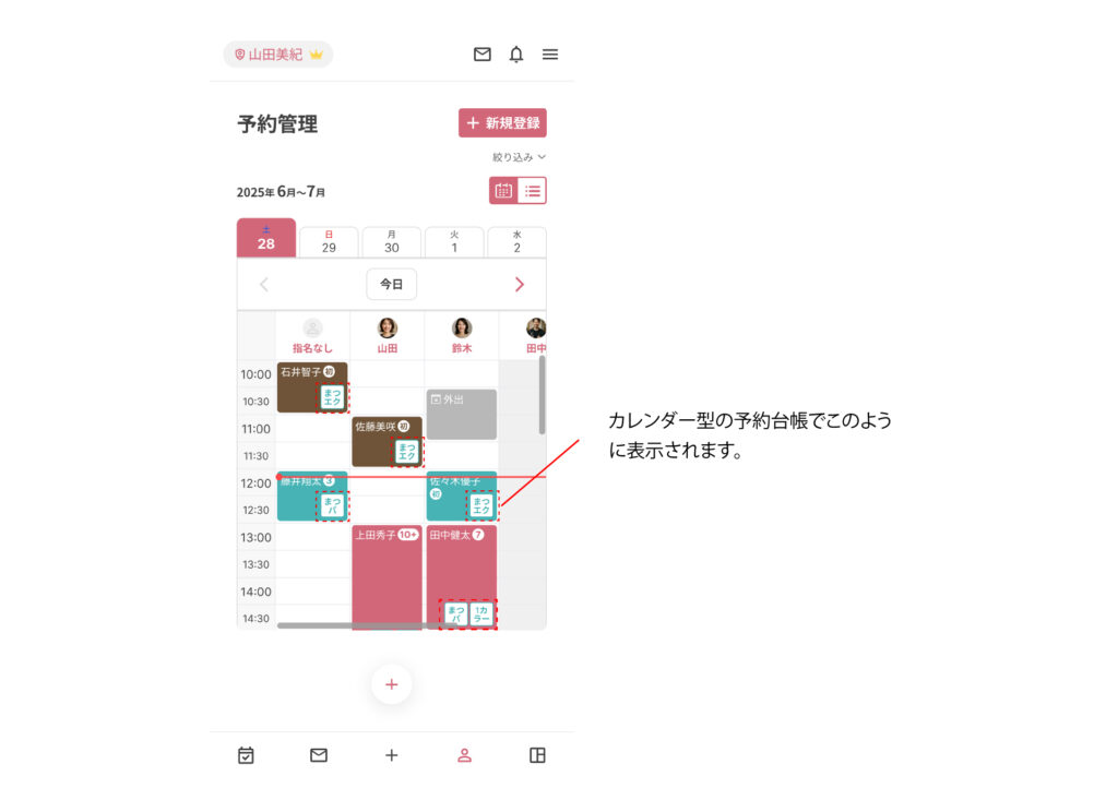 予約台帳に表示するラベル